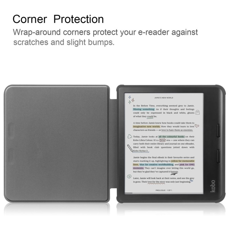 Cet étui pour Kobo Libra Colour offre une protection complète grâce à sa conception en simili cuir et silicone.