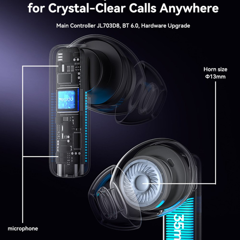 Ces écouteurs YESIDO intègrent quatre microphones associés aux technologies ANC et ENC pour offrir une réduction de bruit efficace, garantissant des appels d’une grande clarté et une écoute immersive, même dans des environnements bruyants. La connexion à deux appareils permet de passer facilement du travail au divertissement, tandis que la finition soft-touch assure une prise en main confortable et durable. Grâce au contrôle de température NTC et à une recharge rapide en une heure, le modèle assure une utilisation sûre, stable et continue.
