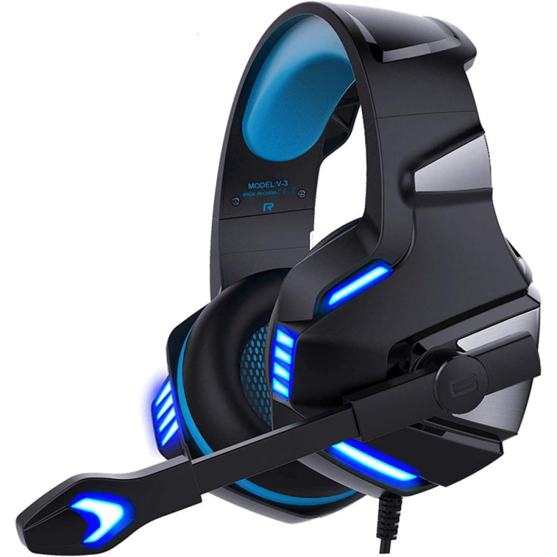 Das kabelgebundene KOTION EACH V-3 Headset bietet einen kraftvollen Sound mit tiefen Bässen und ist ideal als Begleitung für Spielsessions auf PS4 und PS5. Die LED-Beleuchtung sorgt für einen dynamischen visuellen Touch und verstärkt die Immersion. Das Headset wurde für hohen Tragekomfort entwickelt und kombiniert eine leichte Konstruktion mit atmungsaktiven Ohrpolstern aus Kunstleder. Das integrierte Mikrofon sorgt für eine klare Kommunikation mit den Teamkollegen. Dank des 3,5-mm-Steckers und des mitgelieferten Adapters verfügt er über eine breite Kompatibilität. Die ABS-Konstruktion und das geflochtene Kabel sorgen für eine gute, langfristige Haltbarkeit.