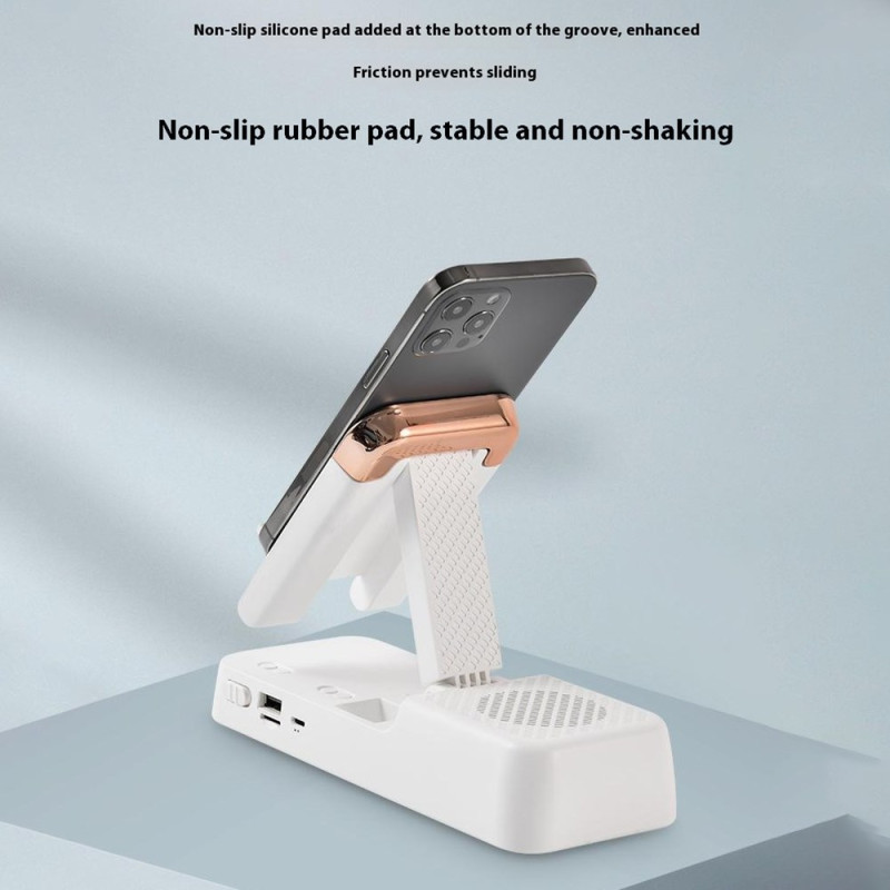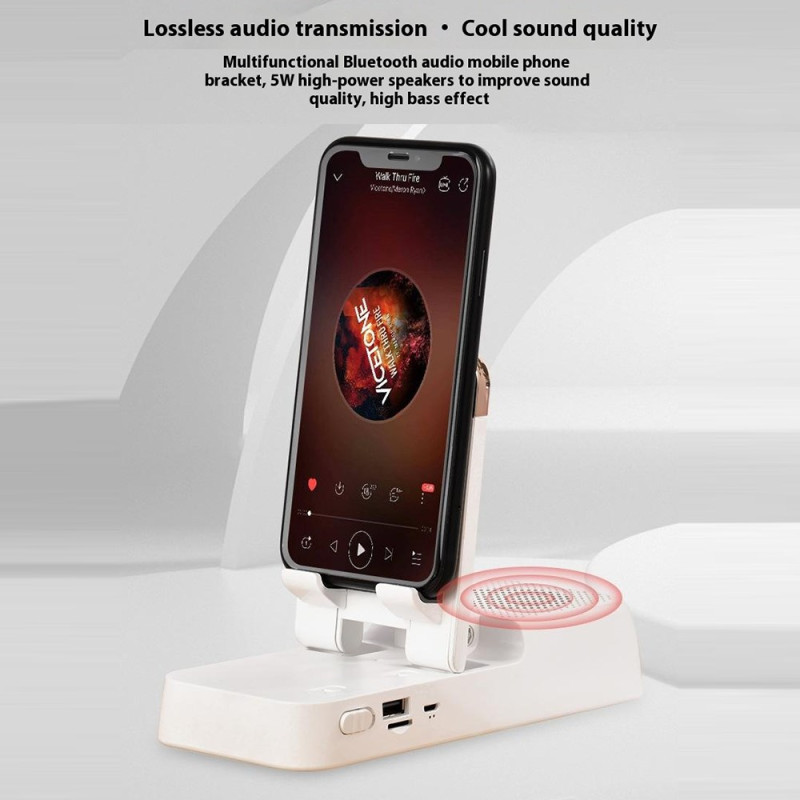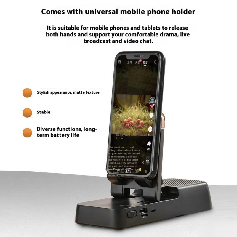 Support ajustable multifonction avec haut-parleur Bluetooth intégré et batterie rechargeable 1200mAh. Profitez d'un son haute qualité tout en maintenant votre appareil en position optimale. Compact et portable, idéal pour une utilisation quotidienne.