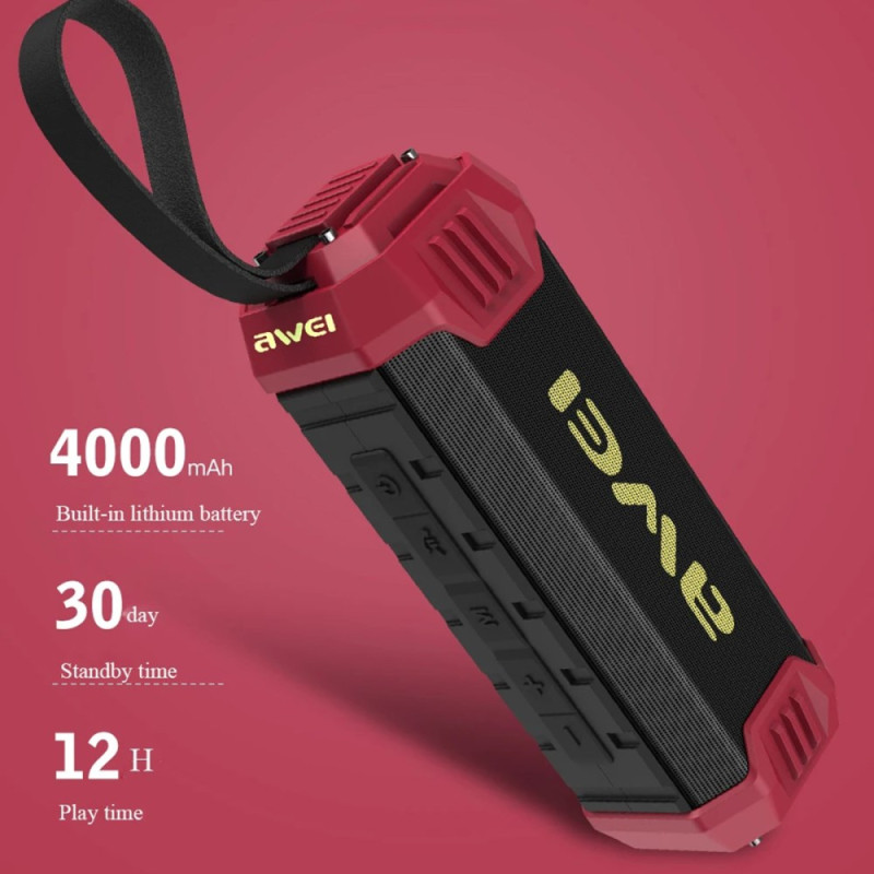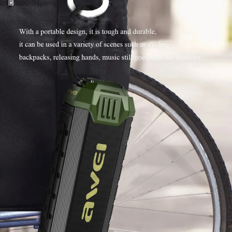 Genießen Sie mit dem tragbaren Lautsprecher AWEI Y280 einen kraftvollen 16-Watt-Sound. Er ist nach IPX4 zertifiziert, spritzwassergeschützt, hat eine Akkulaufzeit von 12 Stunden und unterstützt Bluetooth 5.3, TF-Karte, USB und FM-Radio. Perfekt für Ihre Outdoor-Abenteuer.