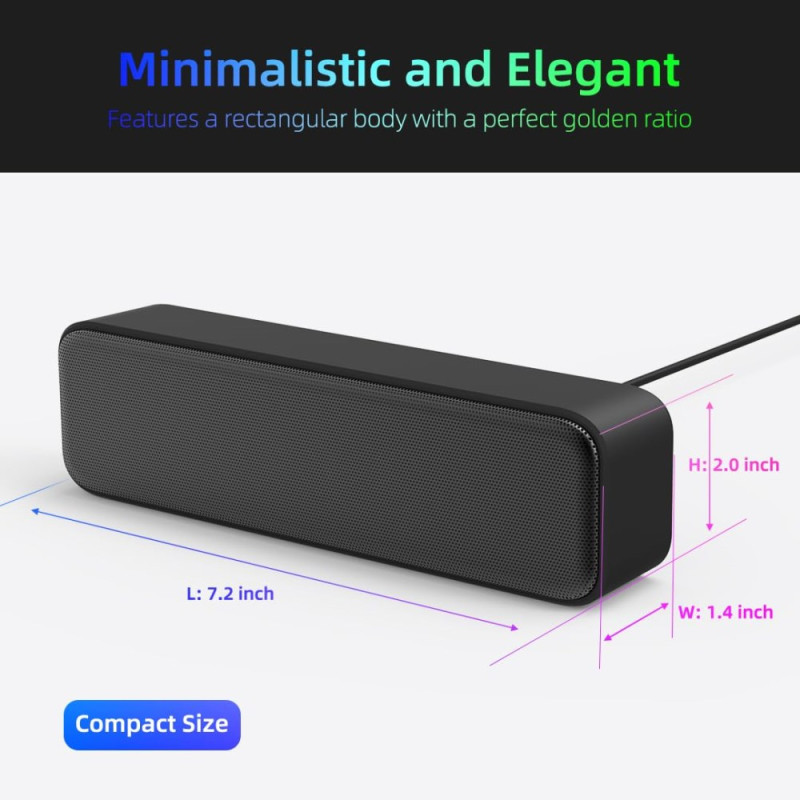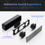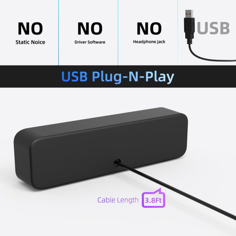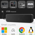 Diese USB-Soundbar bietet eine kraftvolle Audiowiedergabe dank zweier 40-mm-Lautsprecher mit jeweils 3 Watt Leistung, die durch einen Passivradiator zur Verstärkung der Bässe ergänzt werden. Dank ihres kompakten Formats lässt sie sich problemlos auf einem Schreibtisch platzsparend aufstellen und verbessert das Klangerlebnis bei Musik, Filmen oder Videokonferenzgesprächen deutlich. Die USB-Stromversorgung sorgt für eine sofortige Installation ohne Treiber oder externe Stromversorgung. Das schlichte Design mit klaren schwarzen Linien fügt sich harmonisch in jeden modernen Arbeits- oder Wohnbereich ein.