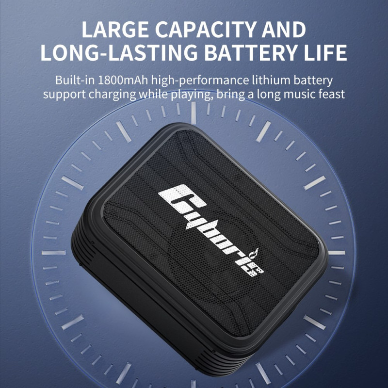 Dieser kompakte, wasserdichte IPX7-Lautsprecher von CYBORIS ist vielseitig einsetzbar, sowohl im Freien als auch zu Hause. Sein 15-W-Lautsprecher sorgt für einen klaren und lauten Sound, während die Bluetooth 5.3-Verbindung auch unterwegs eine stabile Übertragung garantiert. Der 1800-mAh-Akku sorgt für eine Laufzeit von über 12 Stunden bei mäßiger Lautstärke. Er bietet Platz für mehrere Audioquellen wie U-Disk, TF-Karte und AUX und verfügt über erweiterte Funktionen wie FM-Radio, Sprachaufzeichnung und Loop-Wiedergabe. Dank des integrierten Trageriemens lässt er sich leicht transportieren und ist somit ein praktischer Begleiter am Strand, im Schwimmbad oder auf Reisen.
