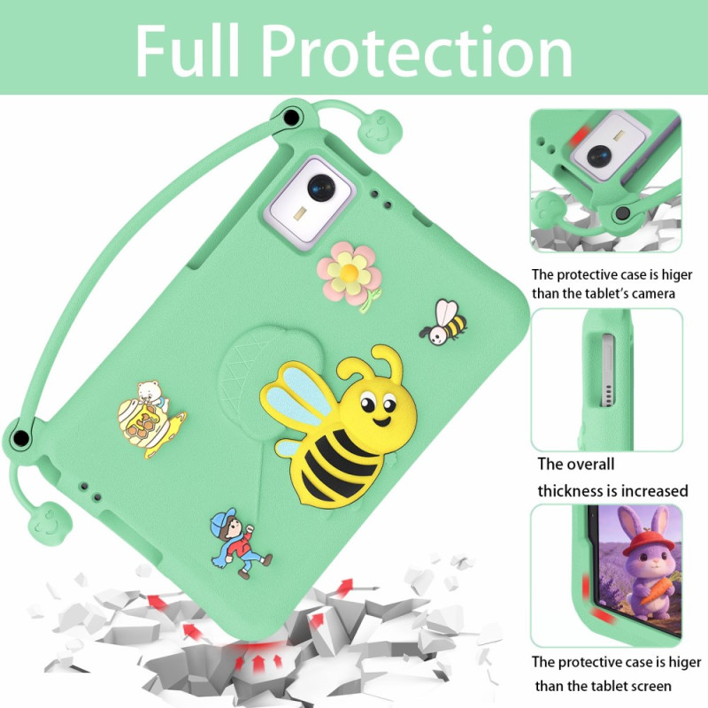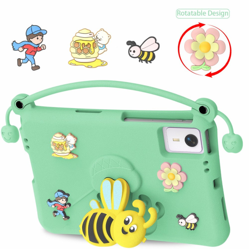 Schutzhülle für Tablets im verspielten Bienendesign, perfekt für Kinder. Ausgestattet mit einem praktischen Tragegriff und einem integrierten Klappständer für freihändiges Betrachten. Hergestellt aus dickem, stoßfestem Material für optimalen Schutz vor Stürzen.