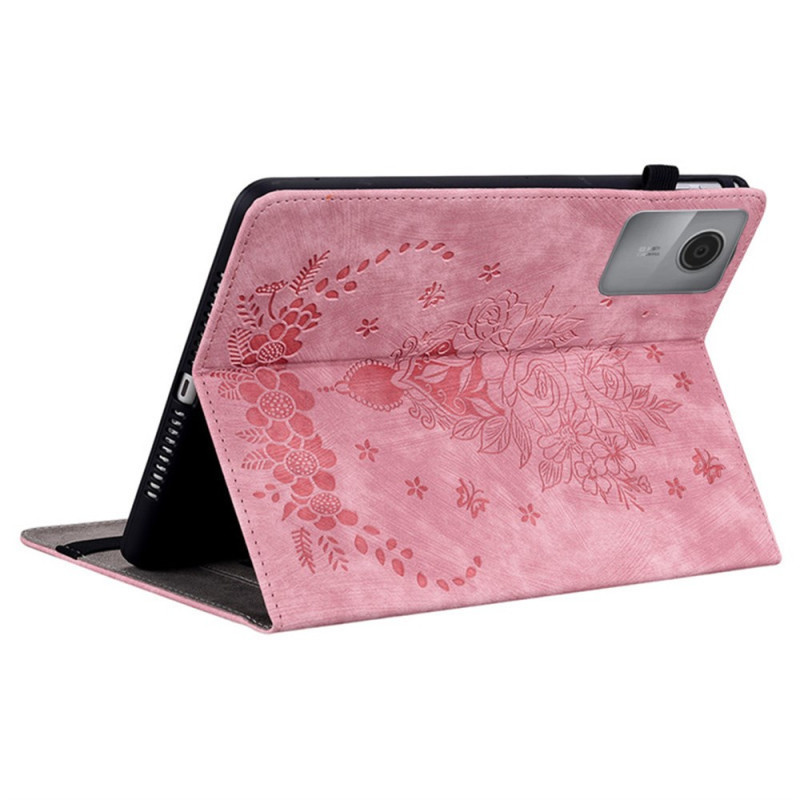 Schützen Sie Ihr Lenovo Tab M11 / K11 (11") - TB330 stilvoll mit dieser raffinierten Hülle mit rosafarbenem Blumen- und Schmetterlingsmuster. Mit einem robusten doppelten Schutz, integrierten Kartenschlitzen und einem verstellbaren Standfuß vereint diese Hülle Stil und Funktionalität.