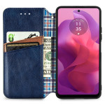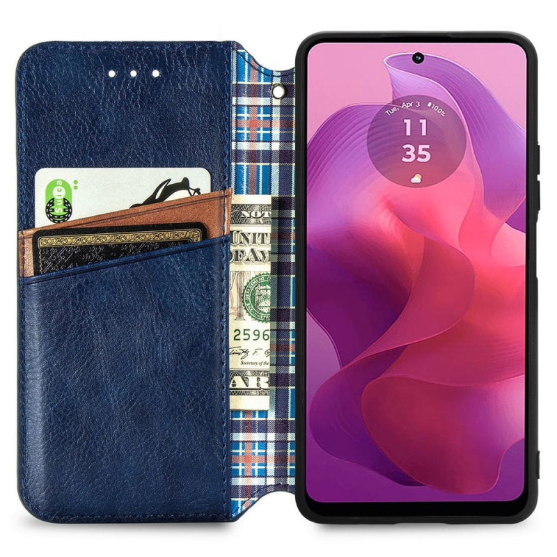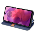Diese Brieftasche aus Leder für Motorola Moto E14 bietet umfassenden Schutz mit einem eleganten Design mit Rautenmuster.