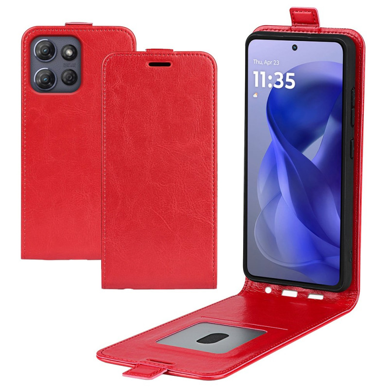 Entdecken Sie unsere elegante vertikale Flip-Hülle für Motorola Moto G Power (2025). Sie vereint Funktionalität und Stil und bietet mit ihrem praktischen, nach unten öffnenden Design, einem Kartenfach und einem sicheren Verschluss optimalen Schutz.
