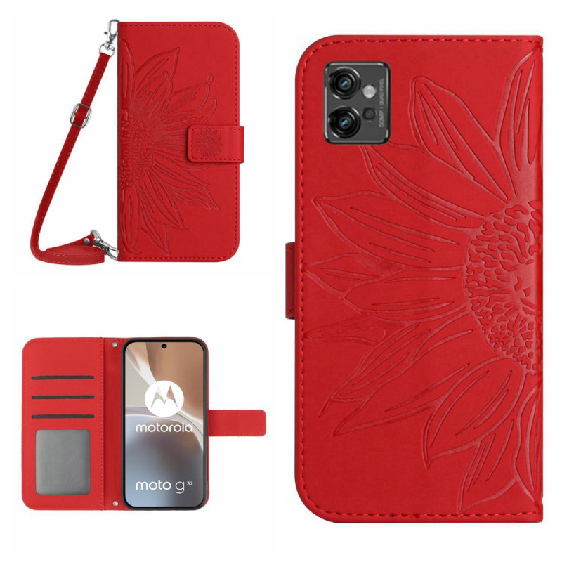 Das Moto G32 ist mit einer Sonnenblumenhülle, die mit einem Schultergurt kommt, vollkommen sicher.