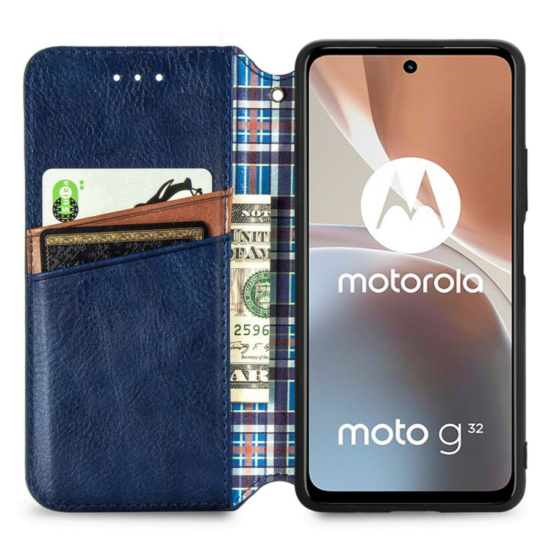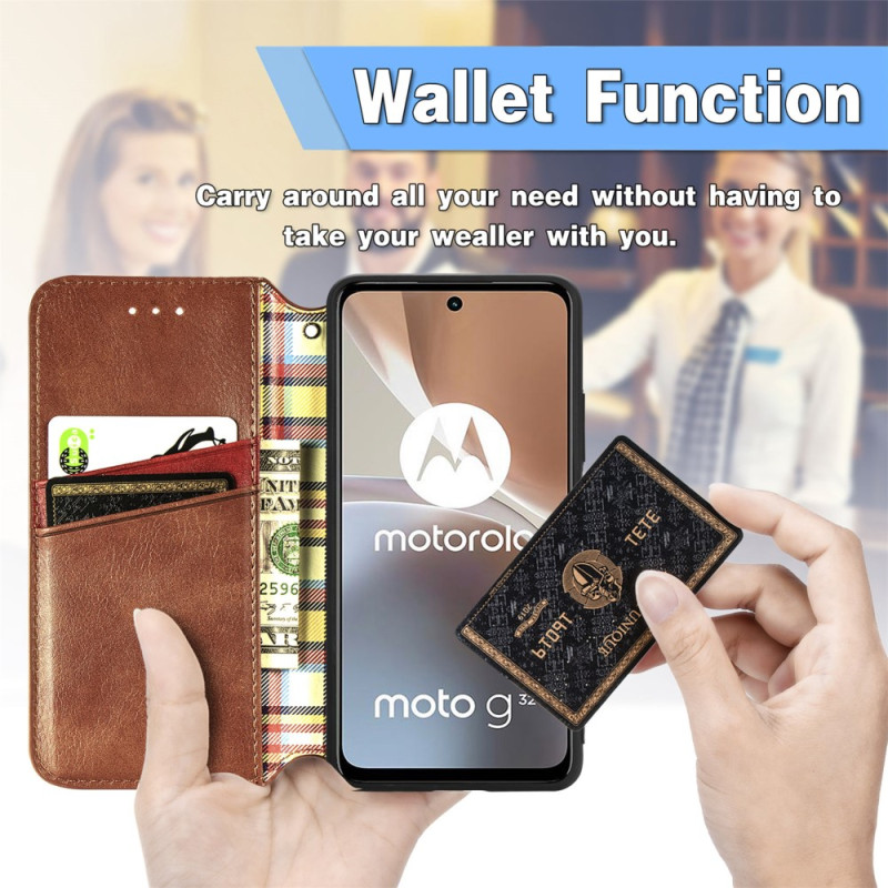 Dieses wunderschöne Vintage-Flipcover mit 3D-Textur wird Ihr Moto G32 fein und sicher sichern.