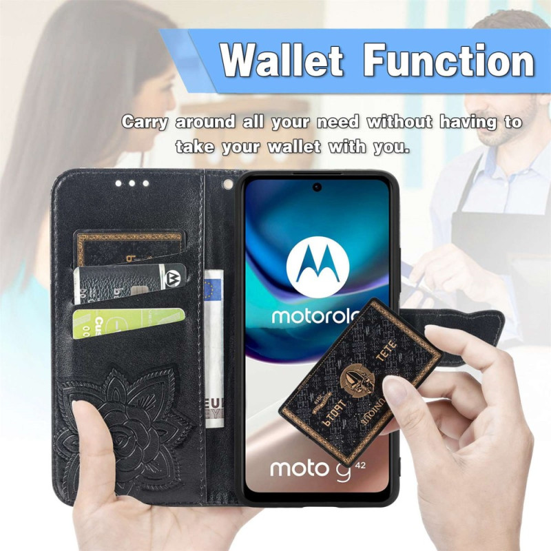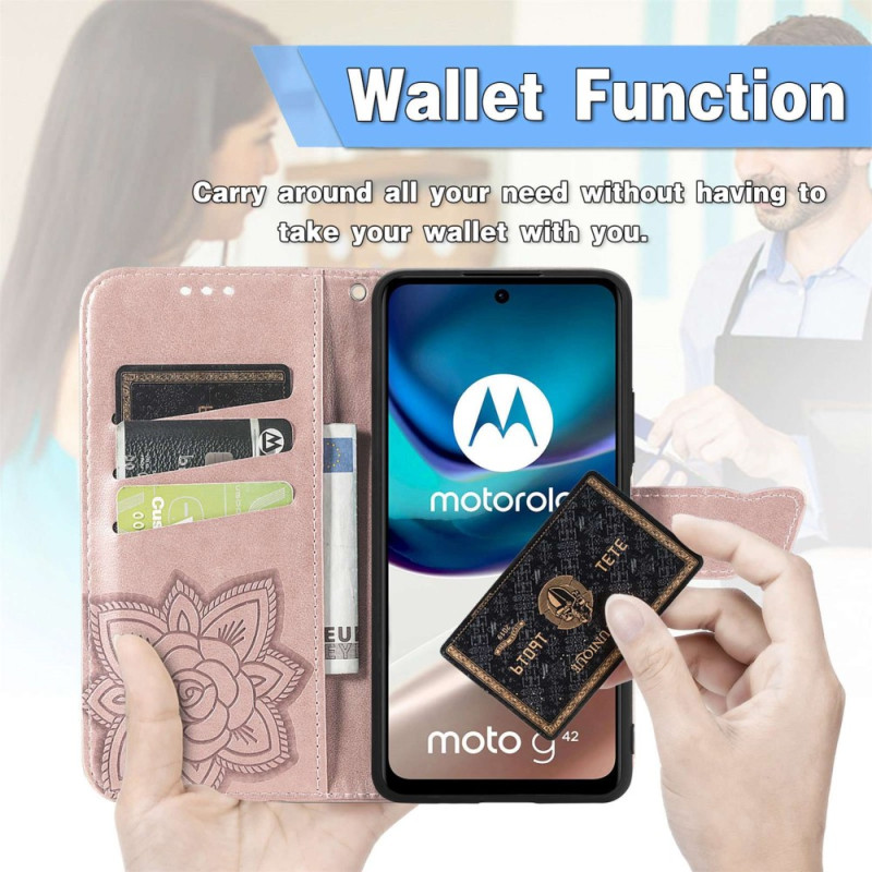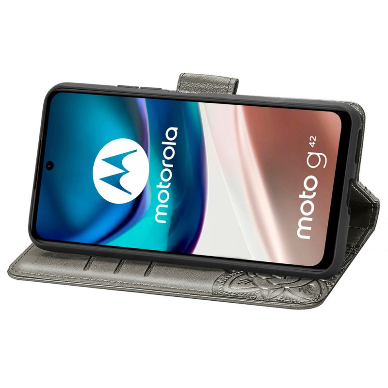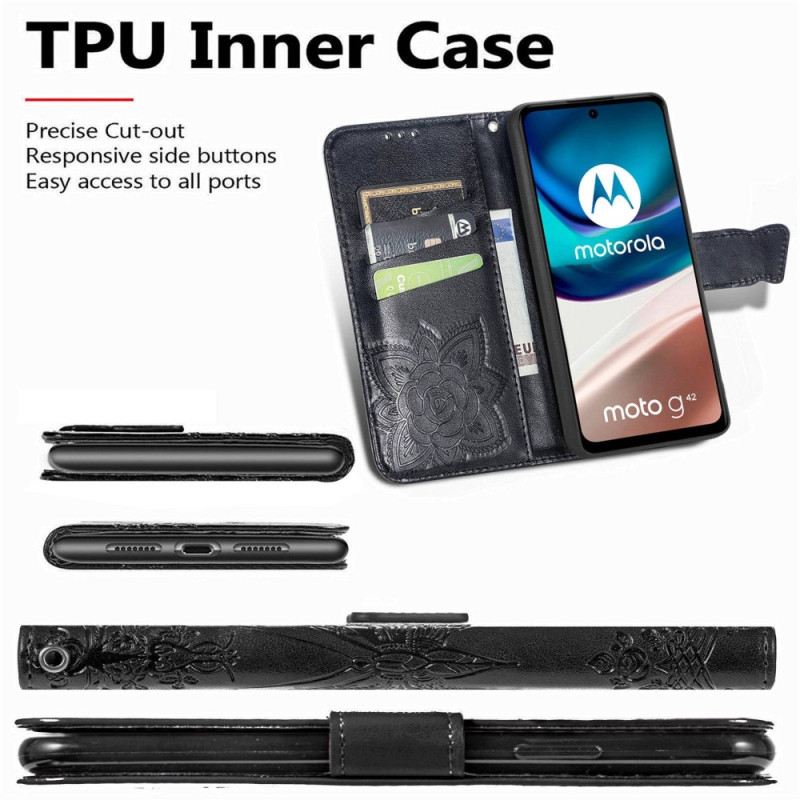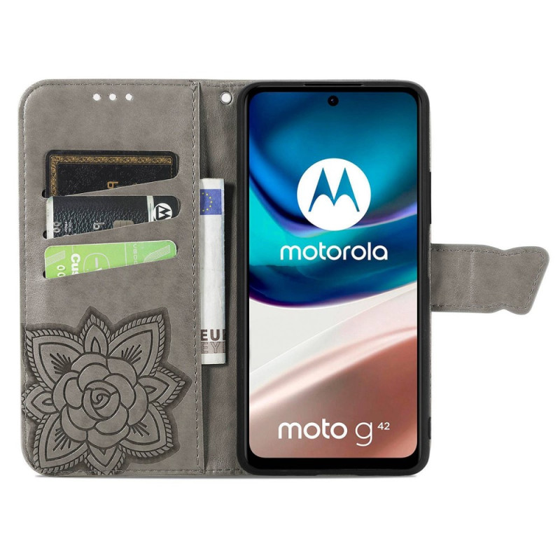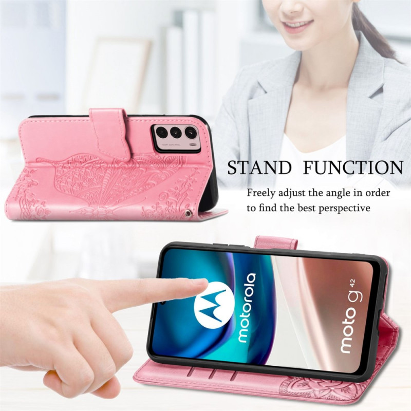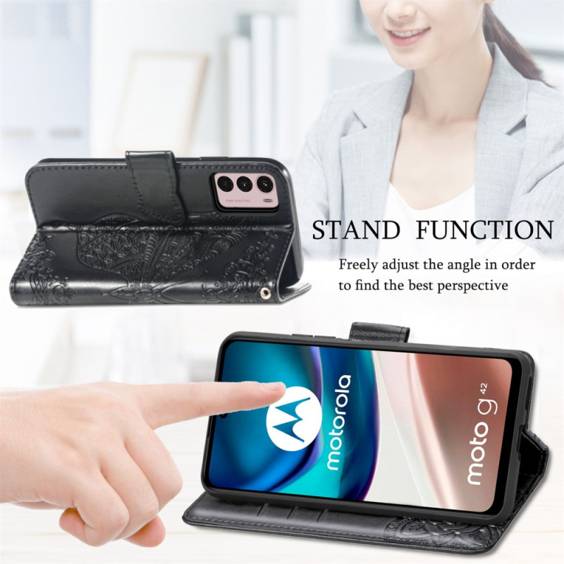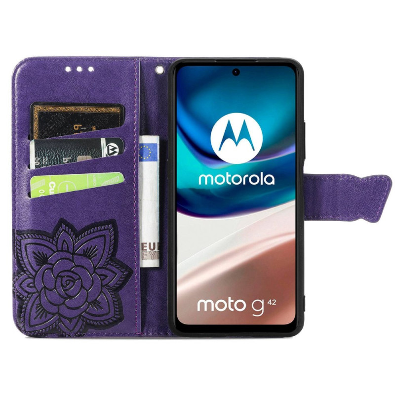 Schützen Sie Ihr Moto G42 auf natürliche und farbenfrohe Weise mit dieser Hülle aus Kunstleder Schmetterling Barock.