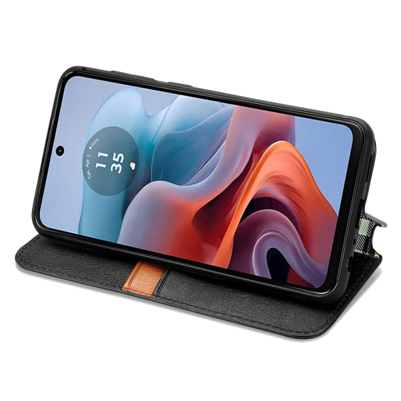 Entdecken Sie unsere elegante Wallet-Hülle für das Motorola Moto G45 5G / G34 5G. Mit ihrem raffinierten Rautenmuster-Design bietet sie umfassenden Schutz und verleiht Ihrem Handy gleichzeitig Stil.
