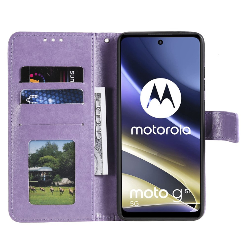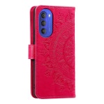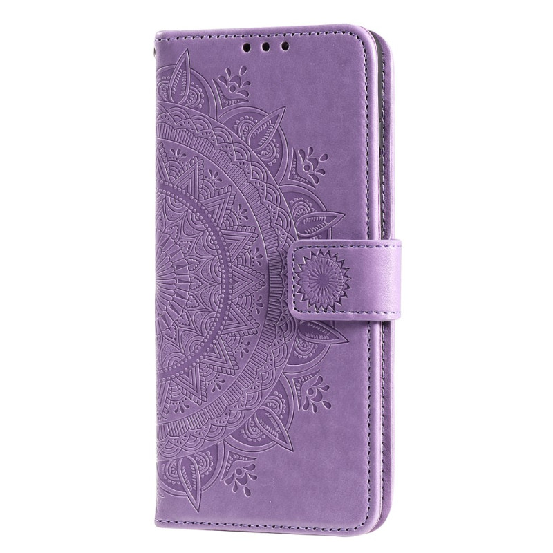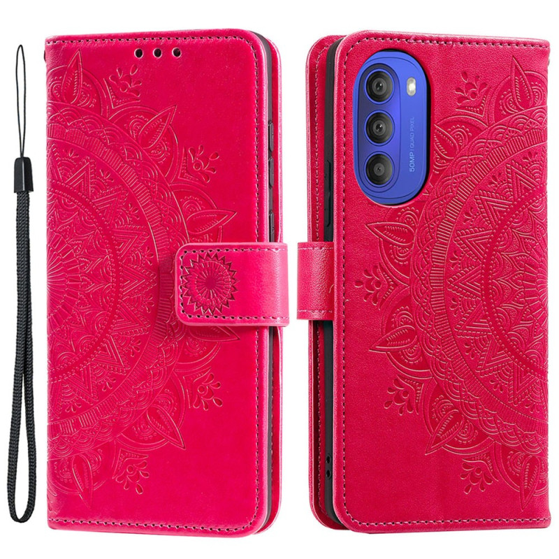 Diese Tasche mit Riemen im Sonnen-Mandala-Design schützt Ihr Moto G51 5G effektiv.