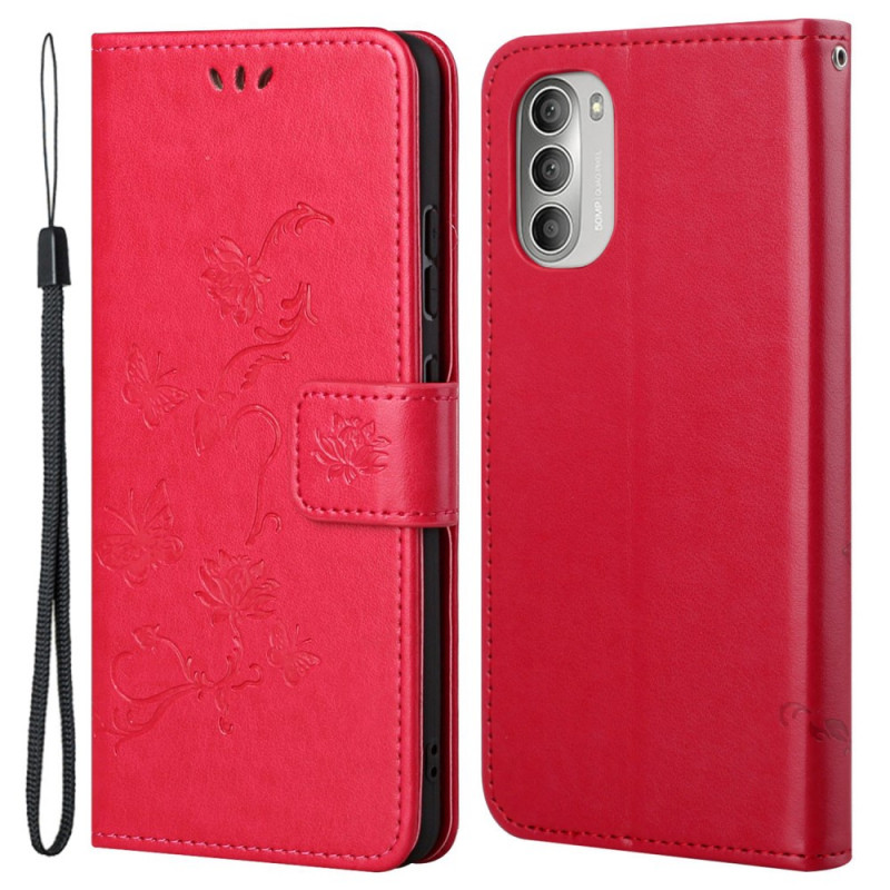 Eine hübsche Hülle für das Moto G51 5G mit einem Design voller Schmetterlinge und asiatischer Blumen.