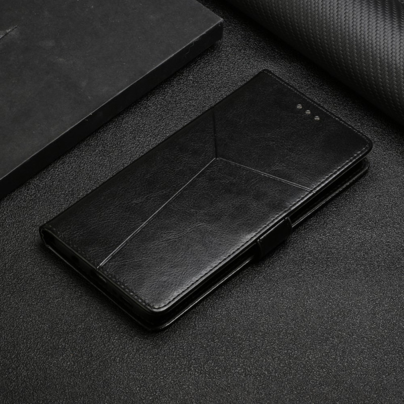 Die Style Lederhülle Geo Y Design mit Riemen bietet einen umfassenden und multifunktionalen Schutz für das Moto G51 5G.