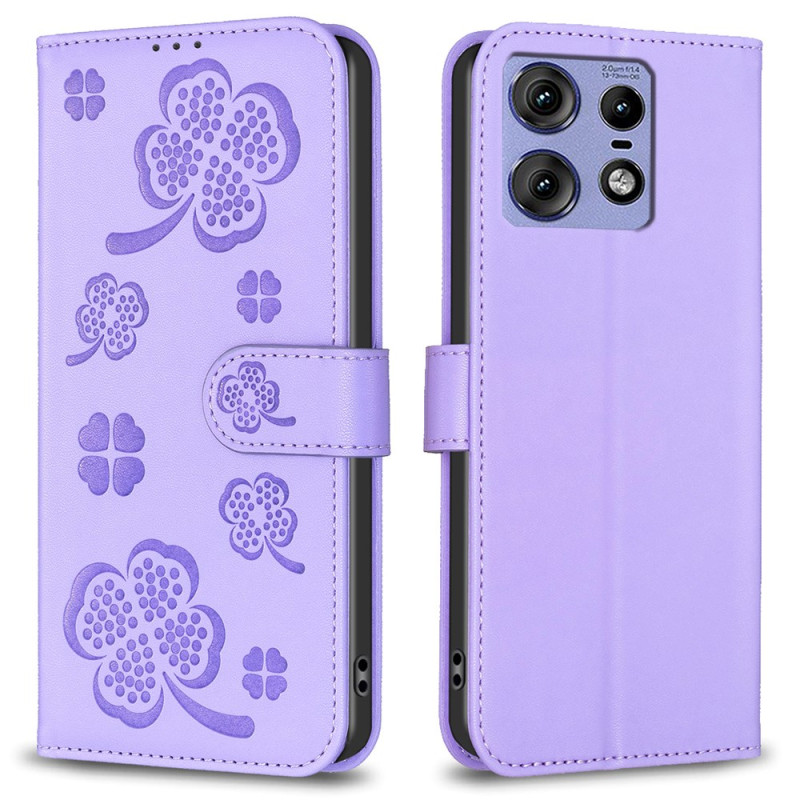 Entdecken Sie unsere Handyhülle aus Leder mit Kleeblattmuster für das Motorola Edge 50 Pro 5G.