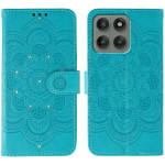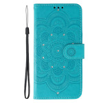 Schützen Sie Ihr Motorola Edge 70 5G elegant mit dieser Klapphülle, die mit einem raffinierten Mandala-Muster und funkelnden Strasssteinen verziert ist. Funktionales Design mit integriertem Kartenhalter, Viewport und praktischer Handschlaufe für den täglichen Gebrauch.