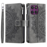 Étui portefeuille élégant en cuir PU avec motif mandala pour Motorola Edge 70 5G. Comprend plusieurs emplacements pour cartes, une poche zippée, un support mains libres et une dragonne pratique. Protection complète alliant style et fonctionnalité.