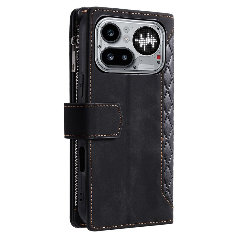 Verleihen Sie Ihrem Nothing Phone (4a) Pro einen Hauch von Eleganz mit dieser lilafarbenen Wallet-Hülle mit raffiniertem Rautenmuster.