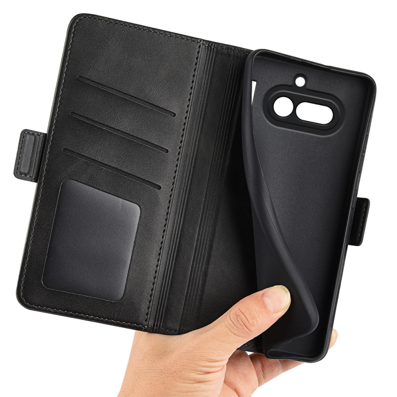 Verbinden Sie Eleganz und Praktikabilität mit dieser Wallet-Hülle für Nothing Phone (4a) im raffinierten Strukturlederdesign.