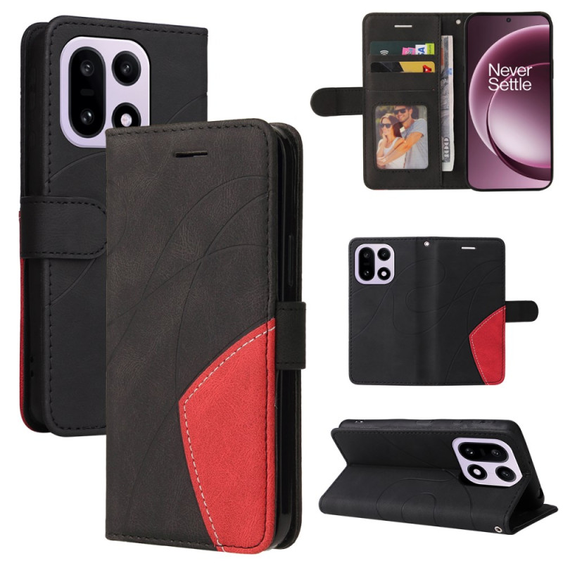 Elegante Brieftasche aus PU-Leder für OnePlus 15 5G. Raffiniertes zweifarbiges Design mit integrierter Standfunktion, Karten- und Fotoschlitzen und sicherem Magnetverschluss. Umfassender Schutz und Stil für den Alltag.