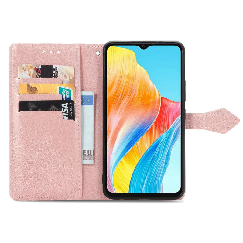 Kombination aus TPU und hochwertigem PU-Leder mit einem geprägten Mandala-Blumenmuster.