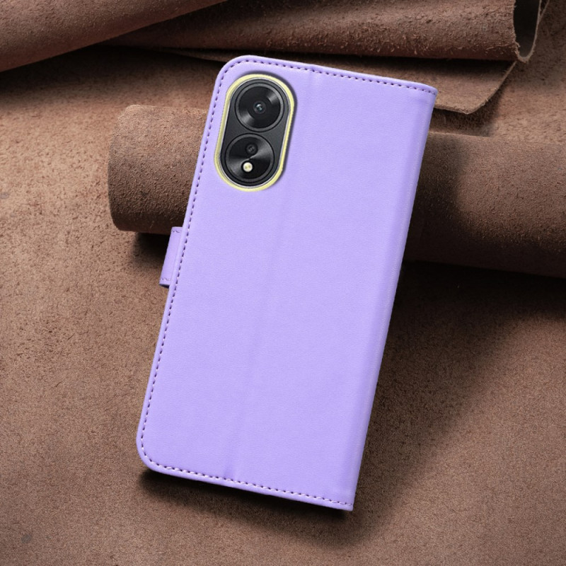 Entdecken Sie unsere Brieftasche aus Leder für das Oppo A38 4G / A18 4G mit einem aufgedruckten Kleeblattmuster.