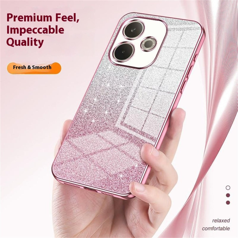 Schützen Sie Ihr Oppo A5 Pro 5G / 4G elegant mit dieser TPU-Hülle mit abgestuftem Glitter-Finish und elektroplatierten Kanten. Glamouröses Design, optimaler Schutz und präziser Zugriff auf alle Funktionen Ihres Smartphones.