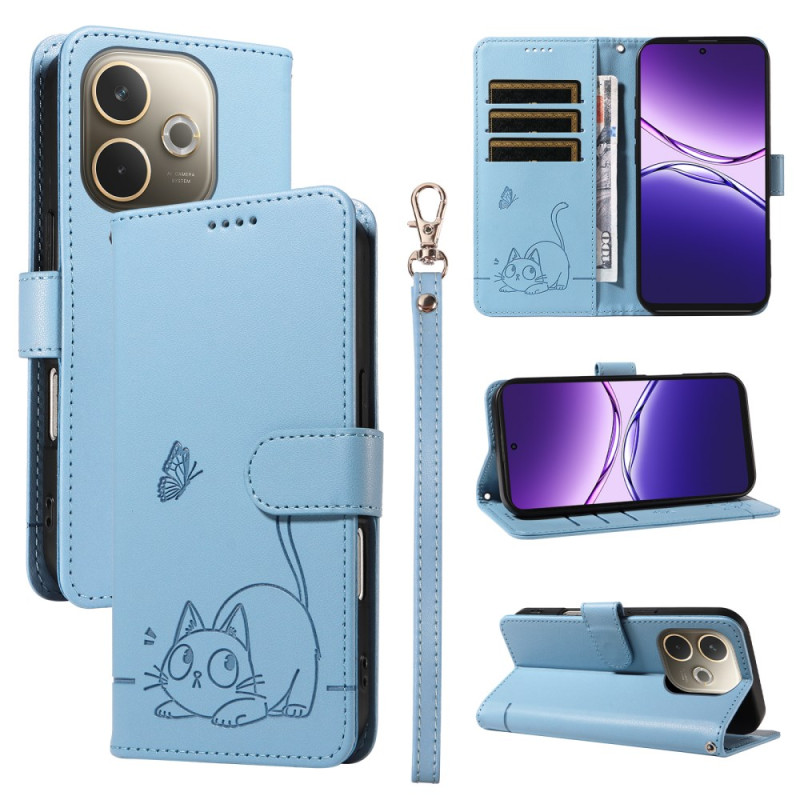 Schützen Sie Ihr Oppo A5 Pro 5G / 4G stilvoll mit dieser eleganten Brieftasche, die mit einem Glückskatzenmotiv verziert ist. Multifunktionales Design mit 3 Kartenfächern, Geldscheinfach und praktischer Handschlaufe.