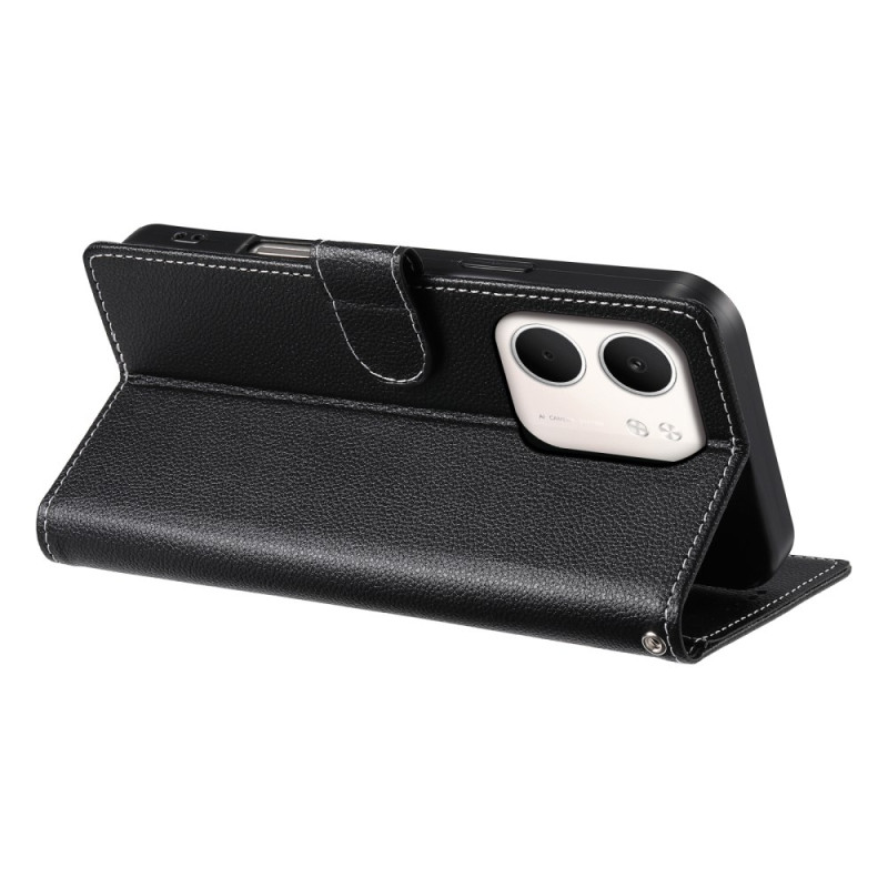 Schützen Sie Ihr Oppo A5X 4G stilvoll mit dieser eleganten Brieftasche. Design aus Premium-Leder mit Litschi-Textur, flexible Innenschale und sicherer Magnetverschluss. Ideal zum Aufbewahren von Karten und Bargeld und dient gleichzeitig als Ständer.