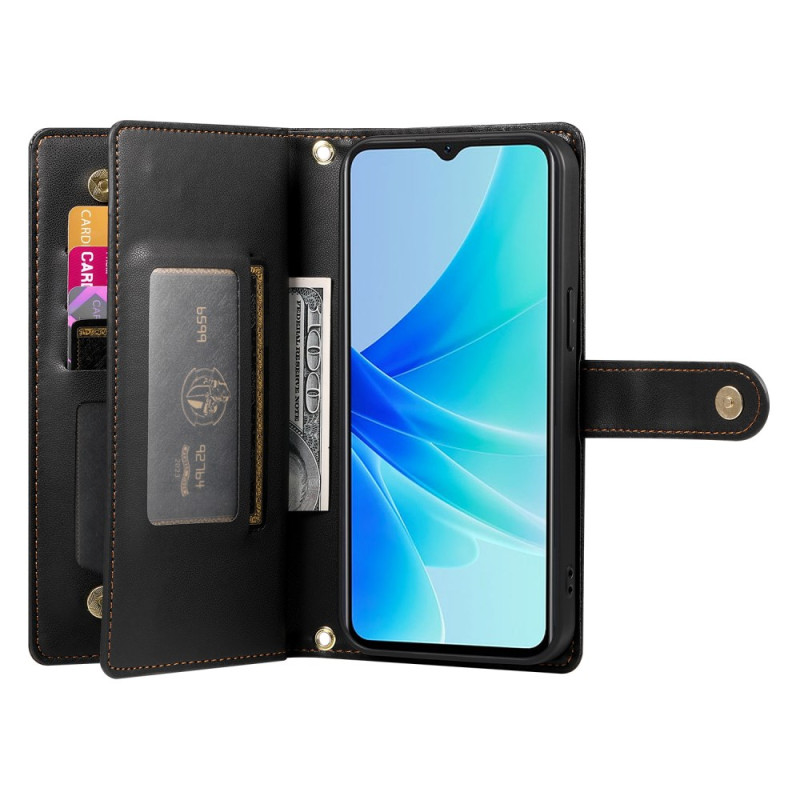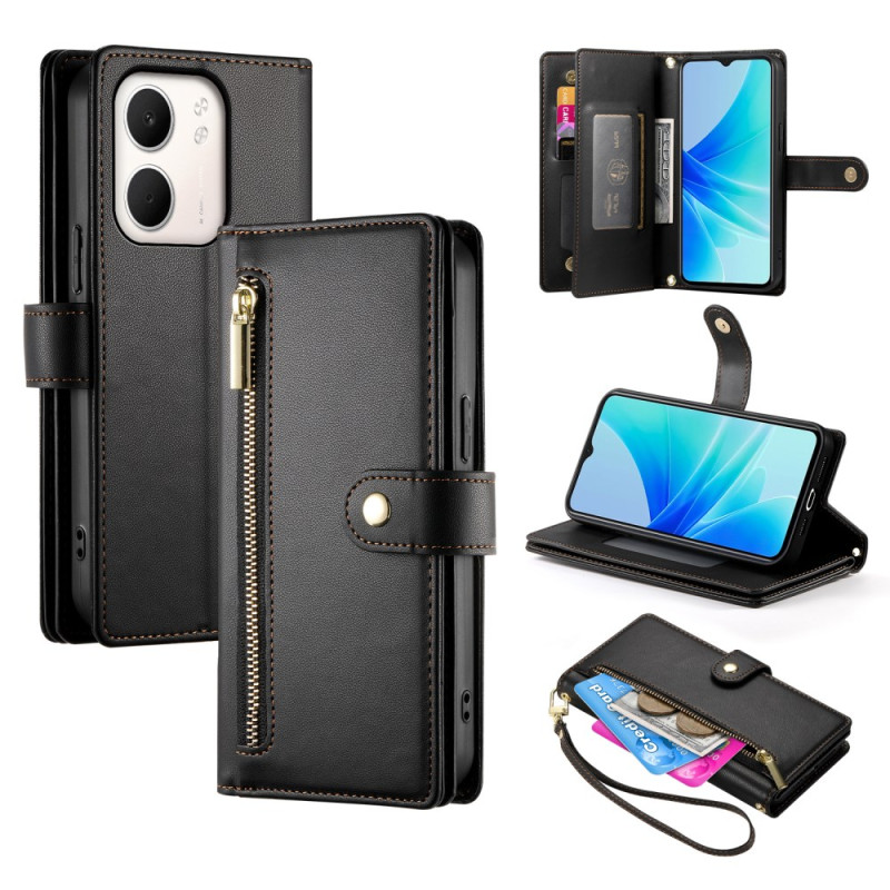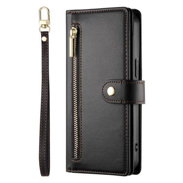 Multifunktionales Etui, das Schutz und Zweckmäßigkeit vereint. Mit mehreren Kartenfächern, einem Reißverschlussfach und verstellbaren Schulterriemen für freihändiges Tragen. Integrierter Klappständer für bequemes Betrachten. Elegantes und sicheres Design.