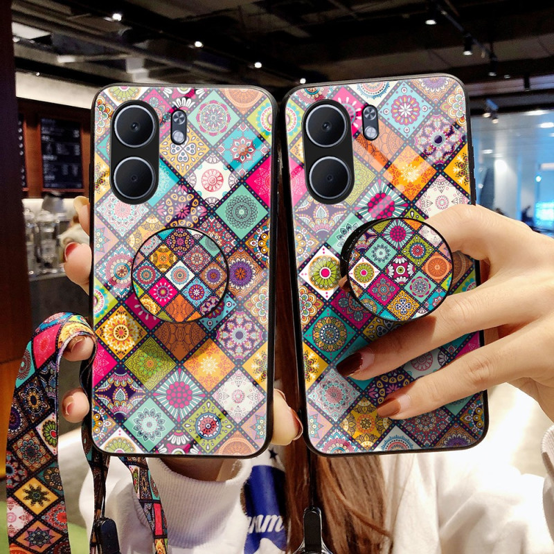 Protégez votre Oppo A5X 4G avec élégance grâce à cette coque robuste dotée d'un support pliable intégré et d'un magnifique motif ethnique. Conçue en verre trempé et TPU souple, elle offre une protection multicouche optimale tout en ajoutant une touche de style à votre téléphone.