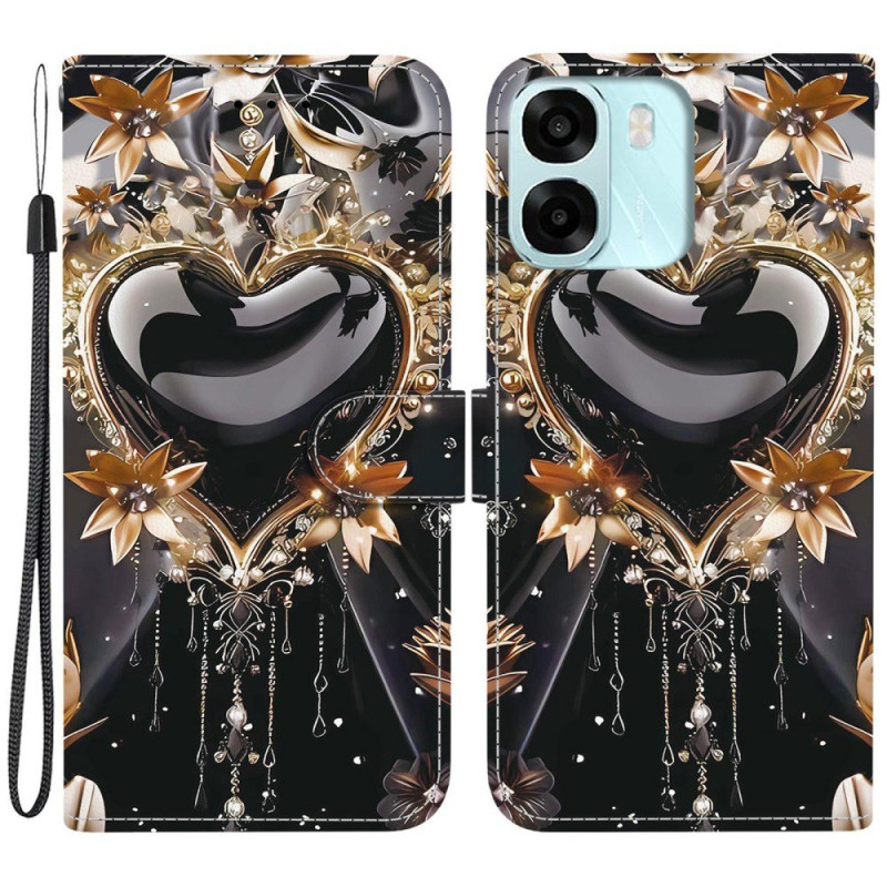 Veredeln Sie Ihr Oppo A6 mit diesem Wallet Case im schwarz-goldenen Design, das Eleganz und Alltagstauglichkeit vereint.