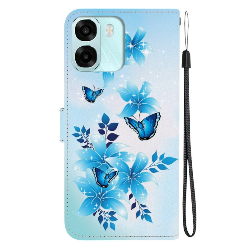 Schützen Sie Ihr Oppo A6 5G / A6X 5G / 4G elegant mit diesem Wallet Case mit blauem Schmetterlingsmotiv.