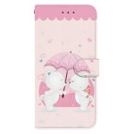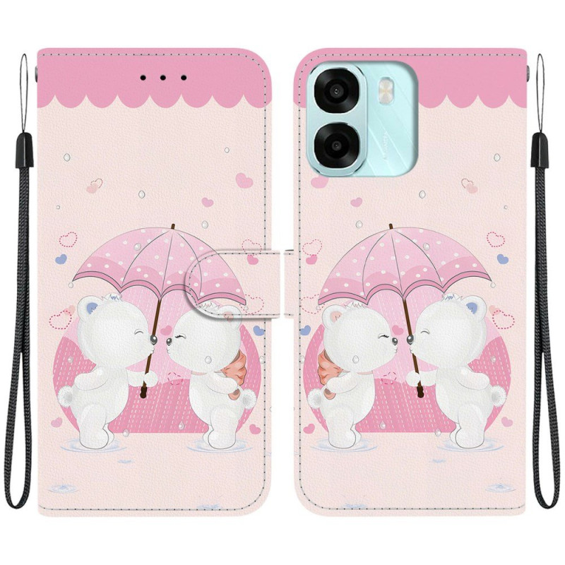 Schützen Sie Ihr Oppo A6 5G / A6X 5G / 4G stilvoll mit dieser Wallet-Hülle mit Cartoon-Bärenpaar-Motiv.