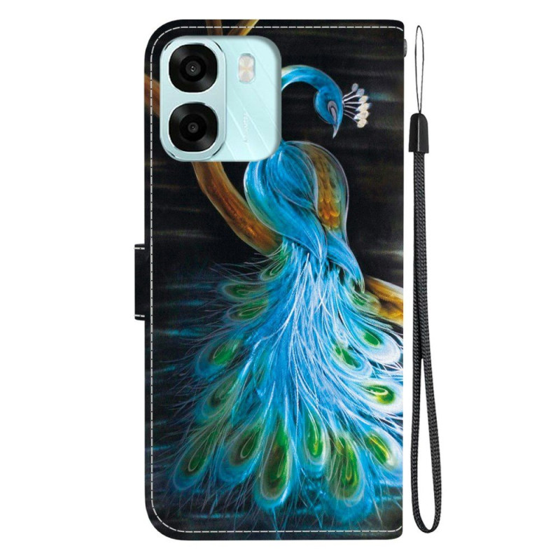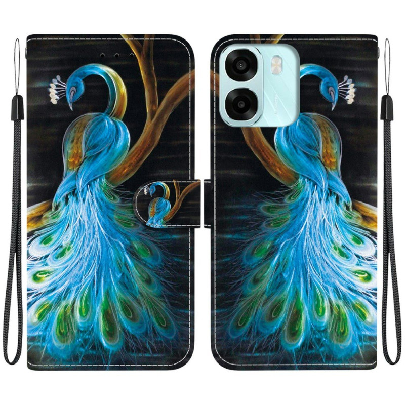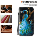 Schützen Sie Ihr Oppo A6 5G / A6X 5G / 4G stilvoll mit dieser Brieftaschen-Folio mit Pfauenmotiv.