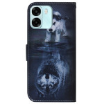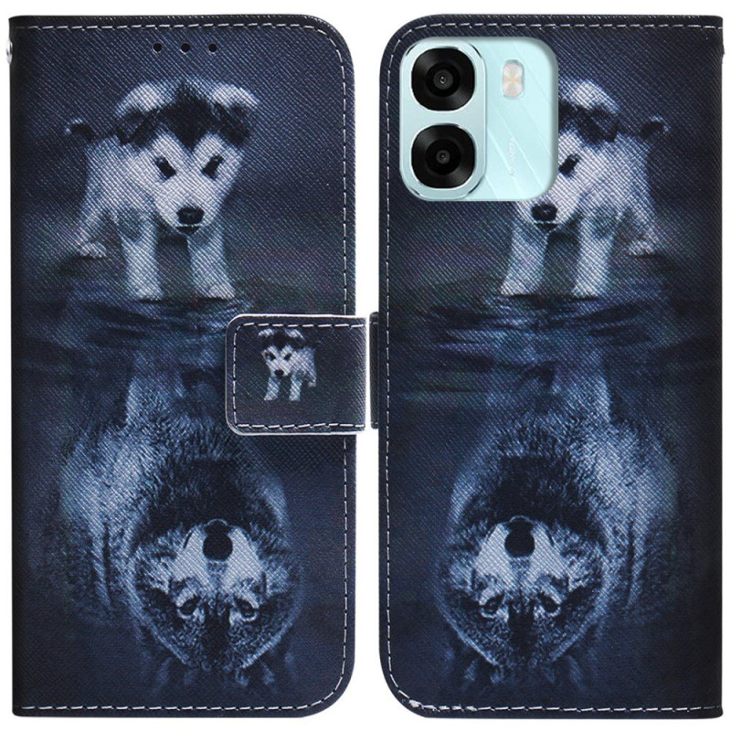 Schützen Sie Ihr Oppo A6 5G / A6X 5G / 4G mit dieser Brieftasche mit Hund und Wolf.