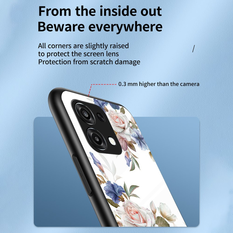 Schützen Sie Ihr Smartphone elegant mit dieser Hülle mit raffiniertem Blumenmuster. Sie besteht aus flexiblem TPU und robustem gehärtetem Glas und bietet optimalen Schutz vor Stößen und Kratzern, während das Design ultradünn und leicht bleibt.
