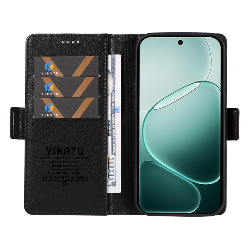 Entdecken Sie das YIKATU Wallet Case, das Eleganz und Funktionalität vereint. Sie ist aus strukturiertem Premium-Litchi-PU-Leder mit gefrosteter TPU-Innenseite gefertigt und bietet umfassenden Schutz mit zwei Kartenfächern und einem Bargeldfach für Ihre täglichen Essentials.