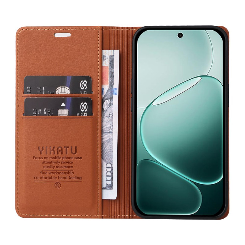 Entdecken Sie das YIKATU Wallet-Etui, das Eleganz und Schutz vereint. Es ist aus Premium-PU-Leder mit matter TPU-Hülle gefertigt und bietet 2 Kartenfächer, 1 Bargeldfach und einen sicheren Magnetverschluss. Integrierte Freisprecheinrichtung.