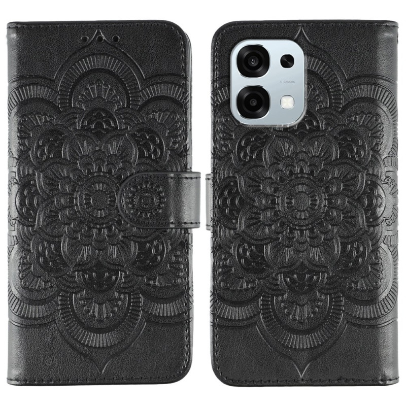 Entdecken Sie diese elegante Brieftasche für das Oppo A6 Pro 5G mit einem wunderschönen Mandala-Muster. Mit seinen Kartenfächern, der Ständerfunktion und der praktischen Handschlaufe vereint es edlen Stil mit optimalem Schutz für Ihr Handy im Alltag.
