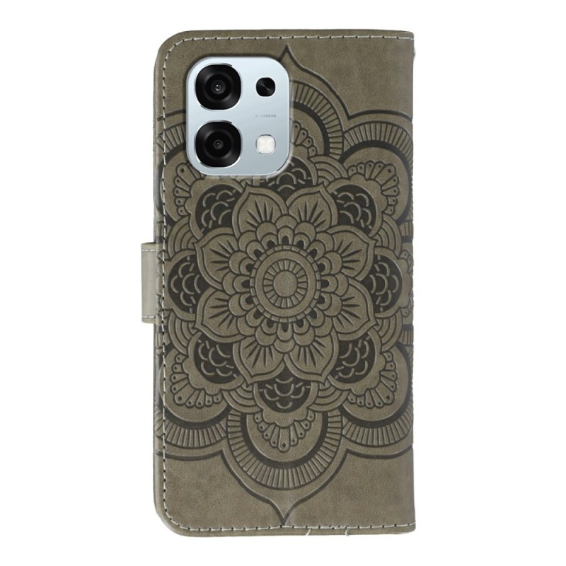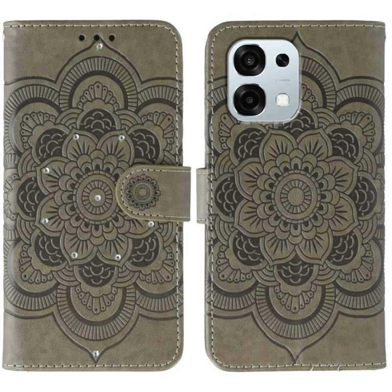 Schützen Sie Ihr Oppo A6 Pro 5G elegant mit dieser Klapphülle, die mit einem raffinierten Mandala-Muster und funkelnden Strasssteinen verziert ist. Ausgestattet mit praktischen Funktionen wie Kartenfächern, einer Handschlaufe und einem integrierten Ständer.