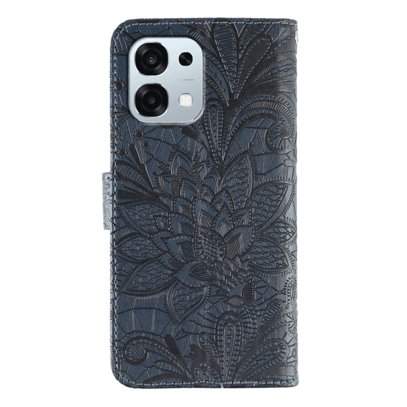 Schützen Sie Ihr Oppo A6 Pro 5G elegant mit dieser aufklappbaren Brieftasche, die mit einem wunderschönen Blumenmuster aus Spitze verziert ist. Mit 2 Kartenfächern, 1 Fotofach und einem Seitenfach vereint es Stil und Alltagstauglichkeit.