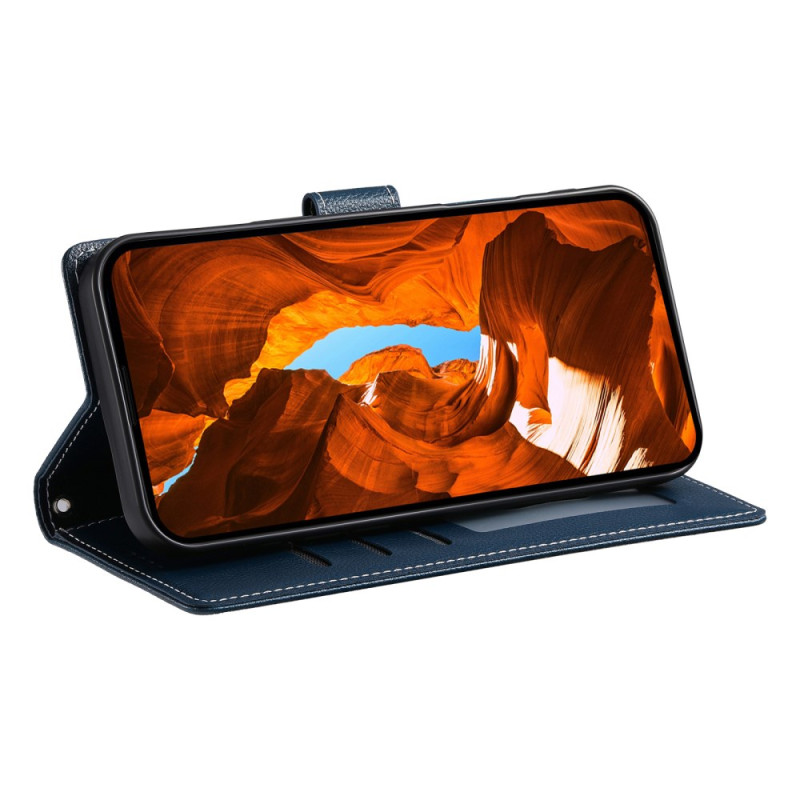 Elegante und funktionale Brieftasche mit sicherem Magnetverschluss. Verfügt über Kartenfächer, Halterungsfunktion und eine praktische Handschlaufe. Flexible Innenschale bietet einen robusten Schutz für Ihr Handy.