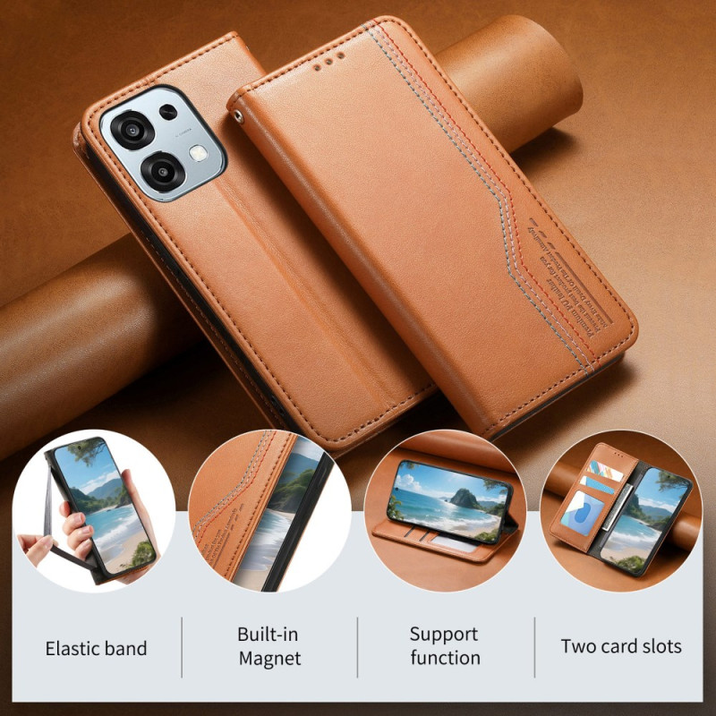 Entdecken Sie diese elegante Brieftasche für Oppo A6 Pro 5G Mit markanten dreifarbigen Nähten vereint sie Stil und Praktikabilität mit 2 Kartenfächern, integriertem Displayhalter und sicherem Magnetverschluss...