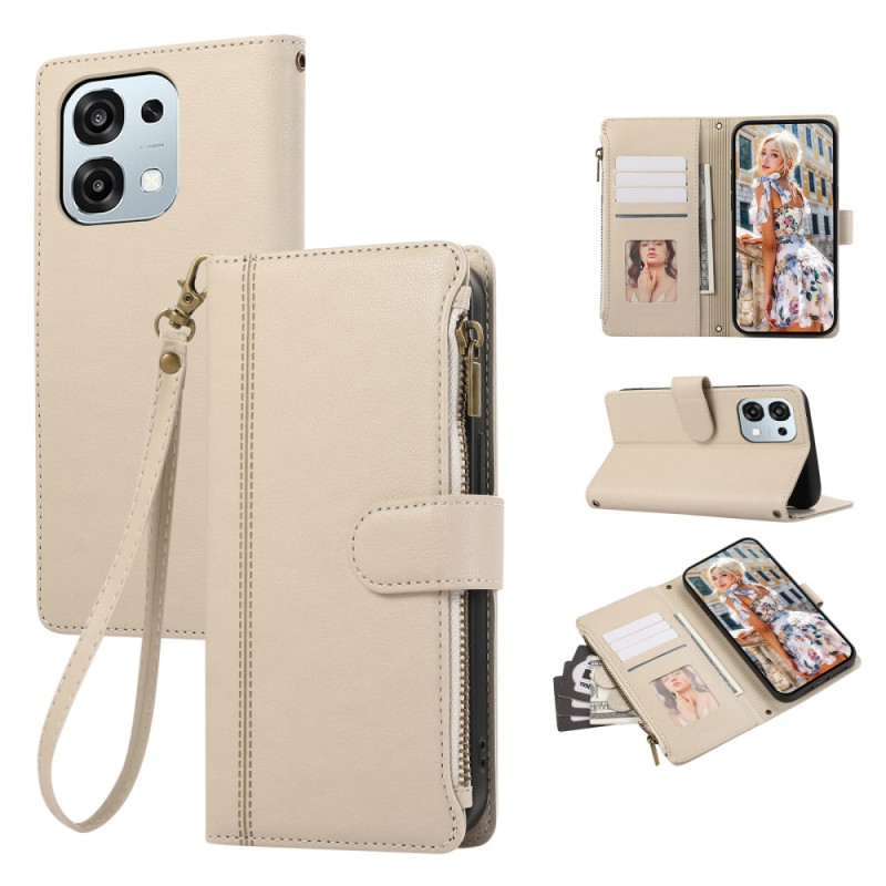 Multifunktionale Brieftasche für das Oppo A6 Pro 5G mit mehreren Kartenfächern, einer sicheren Reißverschlusstasche und einer abnehmbaren Handschlaufe. Elegantes Design, das Premium-Schutz und Alltagstauglichkeit für Ihr Smartphone vereint.