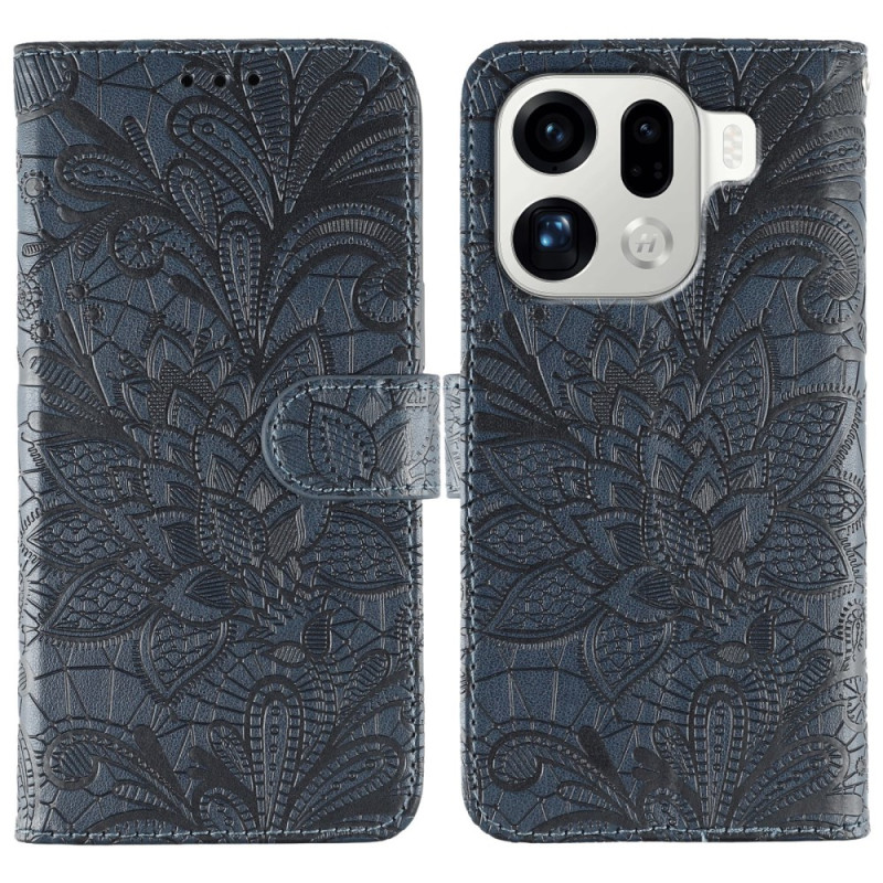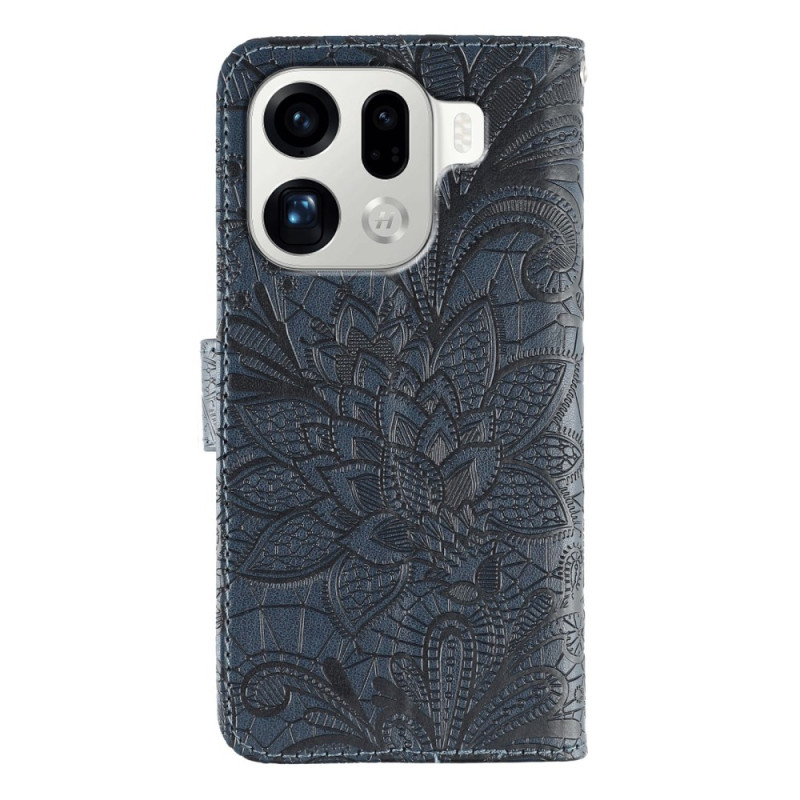 Schützen Sie Ihr Oppo Find X9 Pro 5G elegant mit dieser raffinierten Brieftasche, die mit einem floralen Spitzenmuster verziert ist. Ausgestattet mit Kartenfächern, einer Ständerfunktion und einer praktischen Handschlaufe für den optimalen täglichen Gebrauch.