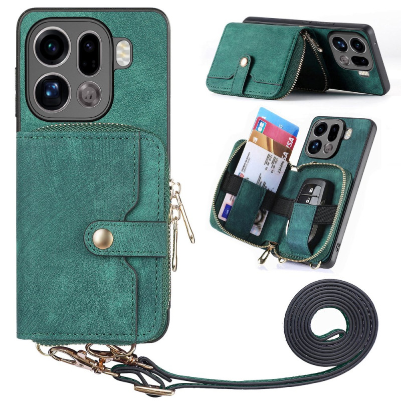 Schützen Sie Ihr Oppo Find X9 Pro 5G stilvoll mit dieser multifunktionalen Hülle. Sie vereint Premium-Schutz, praktische Aufbewahrung mit einem Reißverschlussfach für Karten und Bargeld und einen verstellbaren Schultergurt für freihändiges Tragen. Der Kartenhalter verwandelt sich in eine Halterung für optimale Bildbetrachtung.