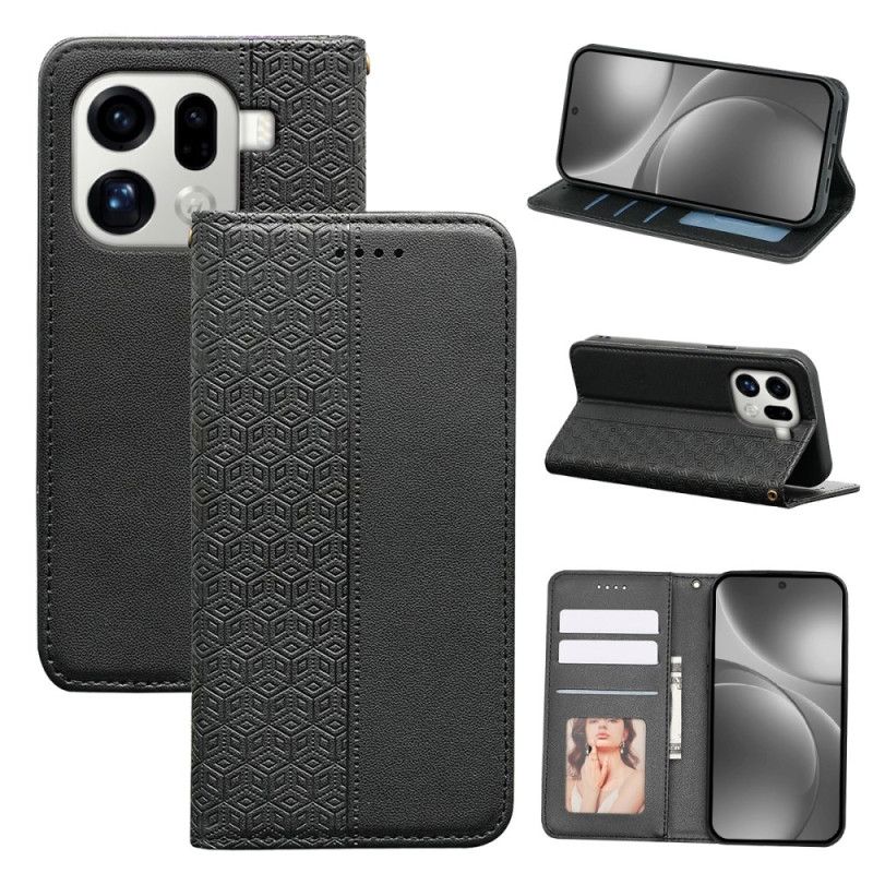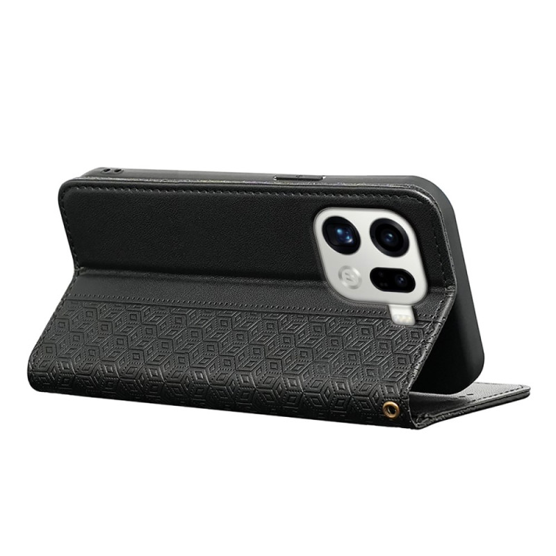 Entdecken Sie unsere elegante Brieftasche für Oppo Find X9 Pro 5G. Das Design mit geprägtem Karomuster ist aus hochwertigem PU-Leder gefertigt. Enthält Karten- und Geldfächer, einen verstellbaren Blickfang und einen sicheren Magnetverschluss.