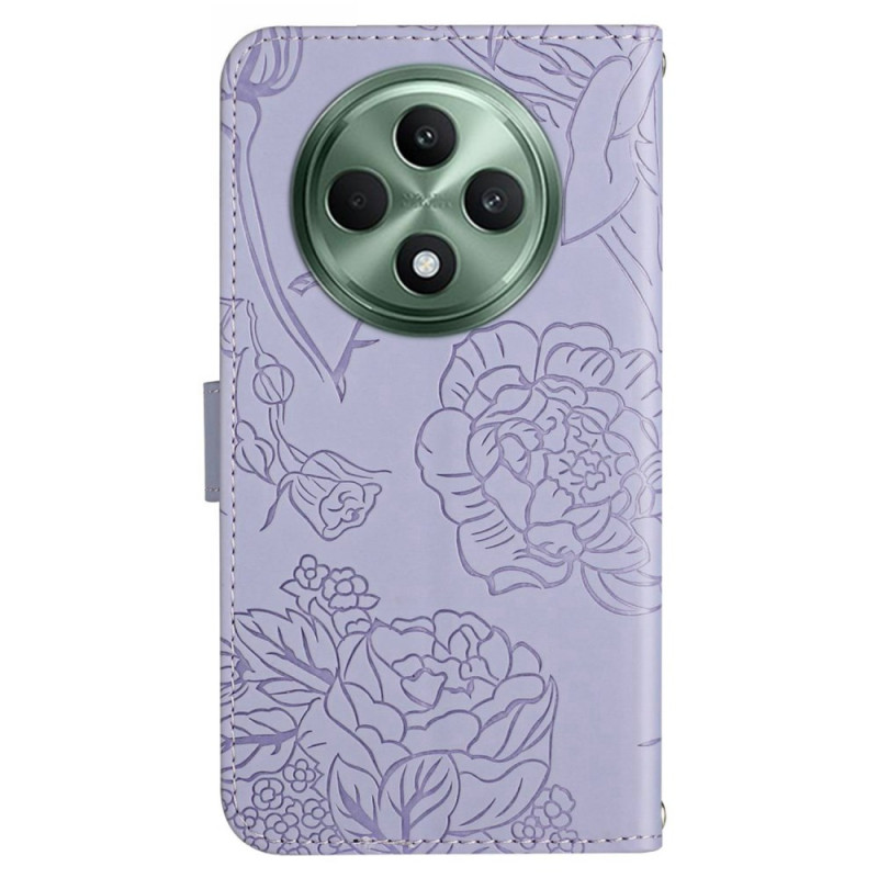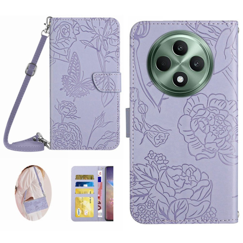 Entdecken Sie unser Etui für Oppo Reno 12F 5G mit einem eleganten Muster aus Schmetterlingen und Blumen.