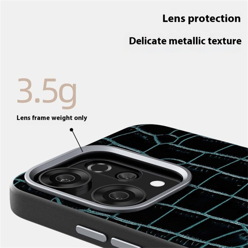 - Premium-Materialkombination: Hergestellt aus einer PC-Hülle, TPU-Rändern, Aluminiumlegierung, echtem Rindsleder und einem 6D-Druckmuster, bietet diese Hülle ein luxuriöses Aussehen und eine langlebige Konstruktion.